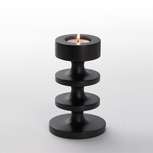 Made in Hevea wood with a dark, rich chocolate stain and copper-finished candle cups.